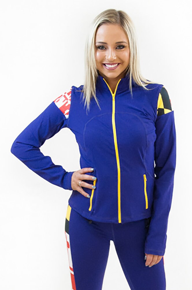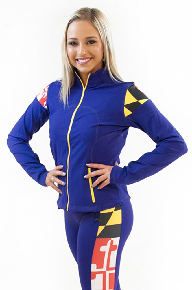 Maryland Flag Women's Full Zip-Up Yoga Track Jacket Purple