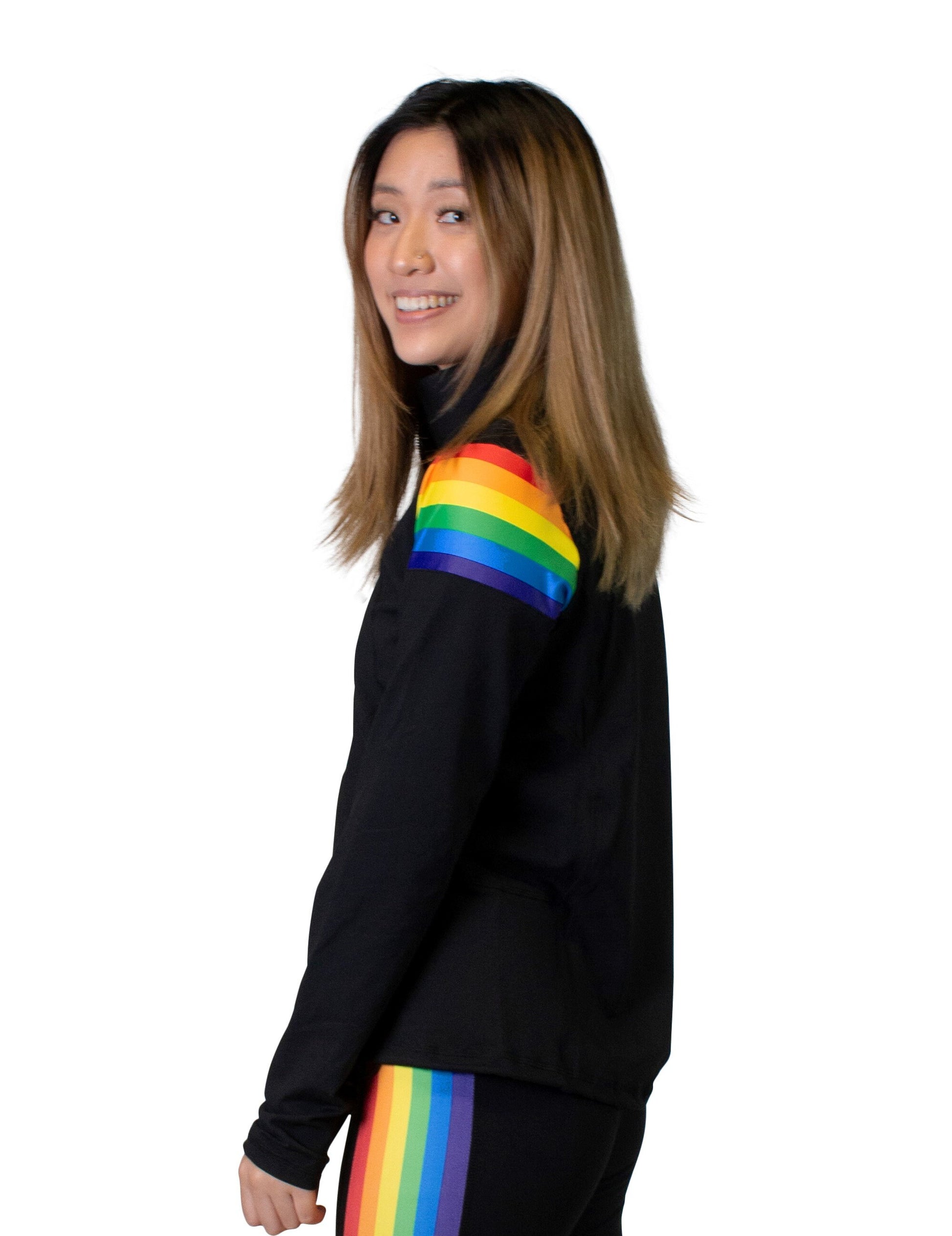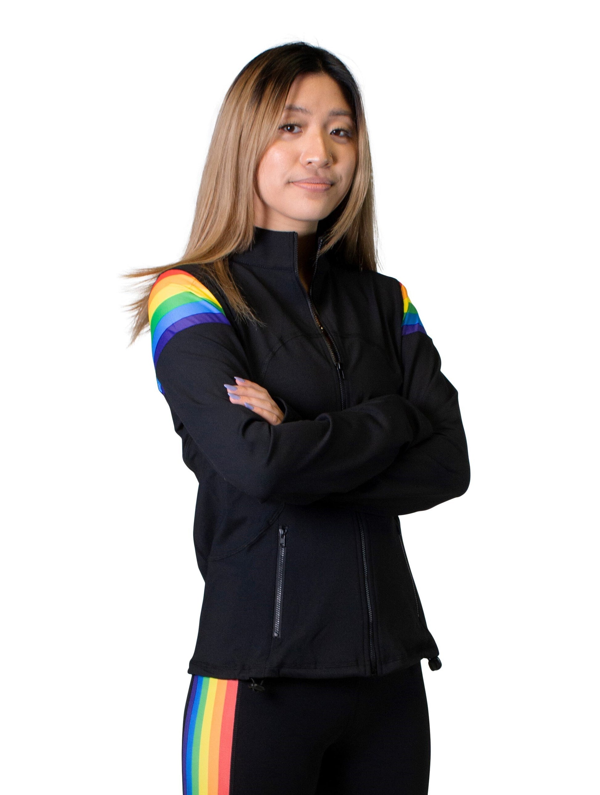 Rainbow Striped Women's Full Zip-Up Yoga Track Jacket