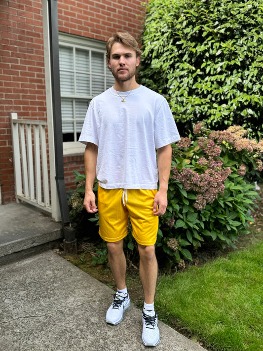 Triple Threat Men's Mesh Shorts (Gold with Green and White Stripes)