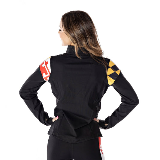 Maryland Flag Women's Full Zip-Up Yoga Track Jacket (Black)