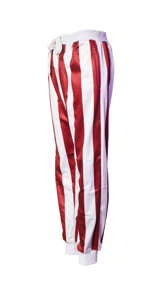 Triple Threat Striped Women's Full Length Yoga Pant Leggings (Gold with red and White Stripes)
